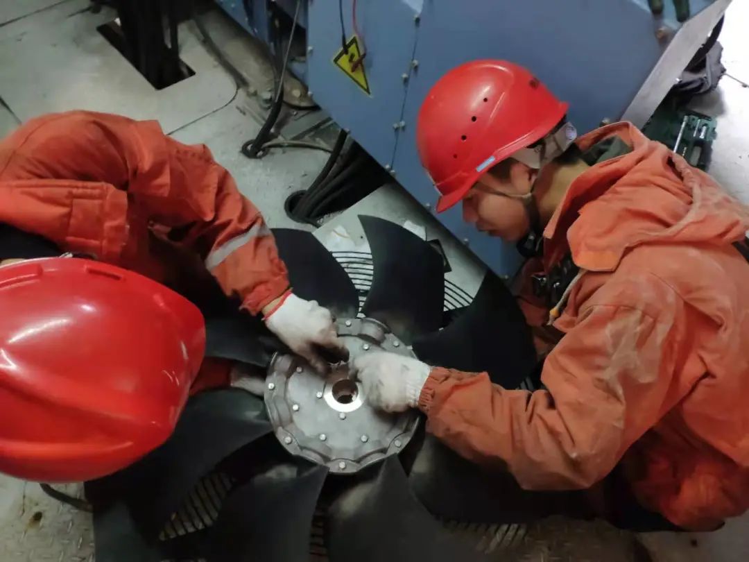 臨近春節(jié),運行人員林正杰帶領(lǐng)班組成員例行巡檢,這時監(jiān)控主機報警顯示9號風機液壓油位低、系統(tǒng)壓力低故障,經(jīng)現(xiàn)場排查后判定為高速閘漏油。“可能是密封圈老化導致漏油,我們要馬上進行搶修”只見林正杰說完,轉(zhuǎn)身沖向設備間方向,攜帶特定維修工具與運行班組驅(qū)車前往故障點。