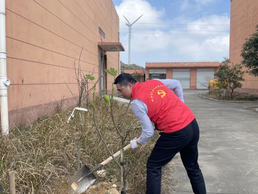 線下,能源公司的黨工團(tuán)志愿者們帶上樹苗、扛起鋤頭,奔赴平陽西灣及蒼南霞關(guān)兩個風(fēng)電場,在暖陽下,挖坑、栽樹、壓土、澆水...... 各個環(huán)節(jié)銜接有序,配合默契,認(rèn)真地完成每一道工序,一棵棵新苗就穩(wěn)穩(wěn)地在土里扎下了根,為風(fēng)電場的春天又增添了一抹新綠。